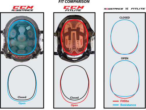 Kask hokejowy CCM Fitlite Kask hokejowy CCM FitLite jest wyposażony w R.E.D. System będący serią pęcherzy wypełnionych cieczą, pozwalających na