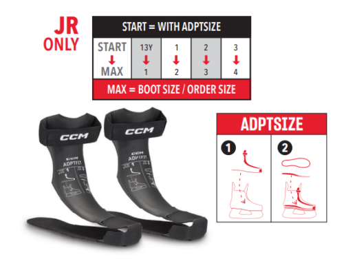 | CCM Skate Size | 1 | 1,5 | 2 | 2,5 | 3 | 3,5 |